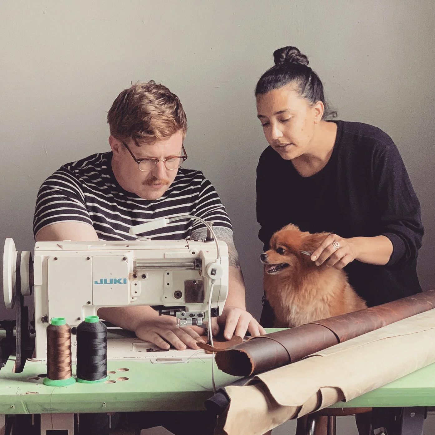 Pictured: Jocelyn and Rob sewing. Photo curtesy of makers.